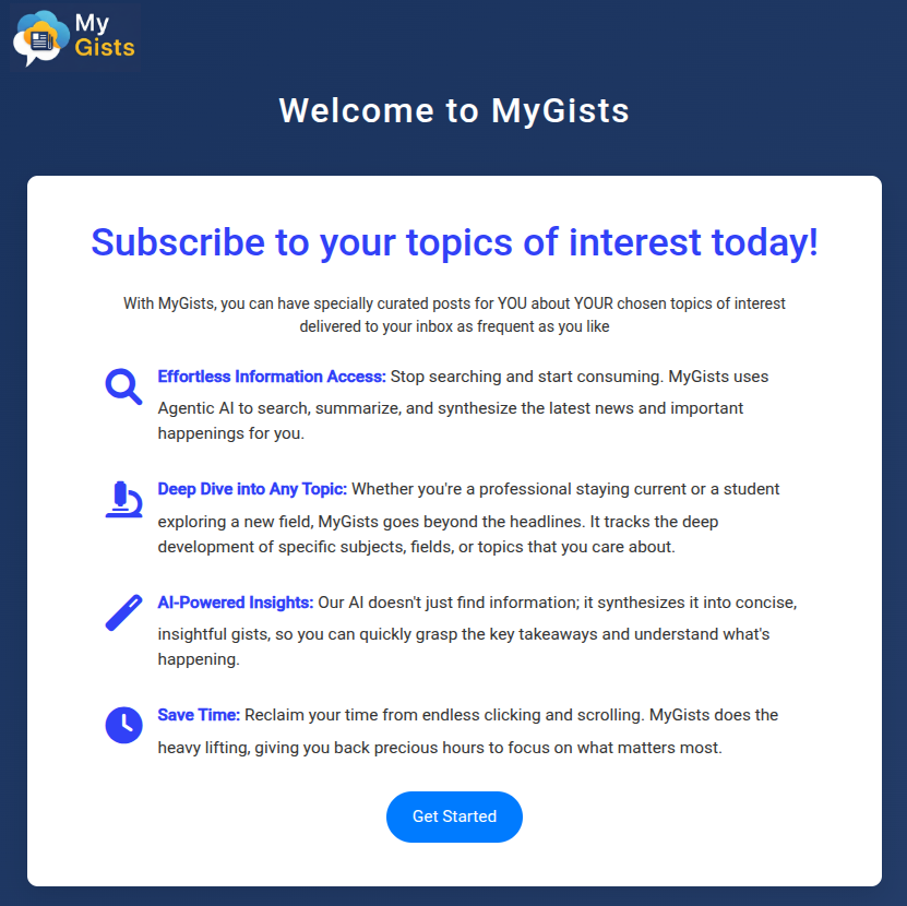 AI(s) like Gemini and ChatGPT is fundamentally shifting our ways of accessing information. To get informed and understand what’s happening in the world, we may not need to search and browse various websites and news portals anymore. Instead, imagine an AI that searches, summaries, synthesizes and comments the important things happening out there for us to easily consume at our finger tips, saving us from laborious clicking and scrolling. That’s exactly what My Gists does for you built with the latest Agentic AI technologies.